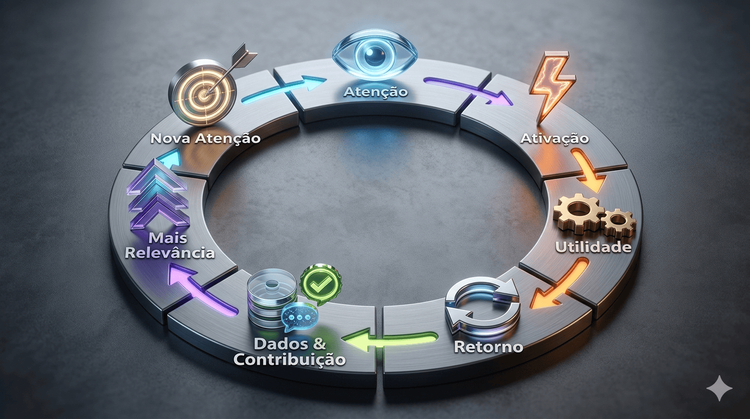 Quando a atenção vira o gargalo, crescimento deixa de ser apenas um problema de aquisição. Passa a ser um problema de desenho sistêmico: como transformar atenção em retorno recorrente, retorno recorrente em comportamento previsível e comportamento previsível em valor econômico acumulado.