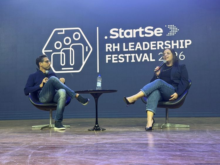 Fabio Neto, da StartSe, e Alyne Vicari, da Volkswagen do Brasil, em painel no RH Leadership Festival